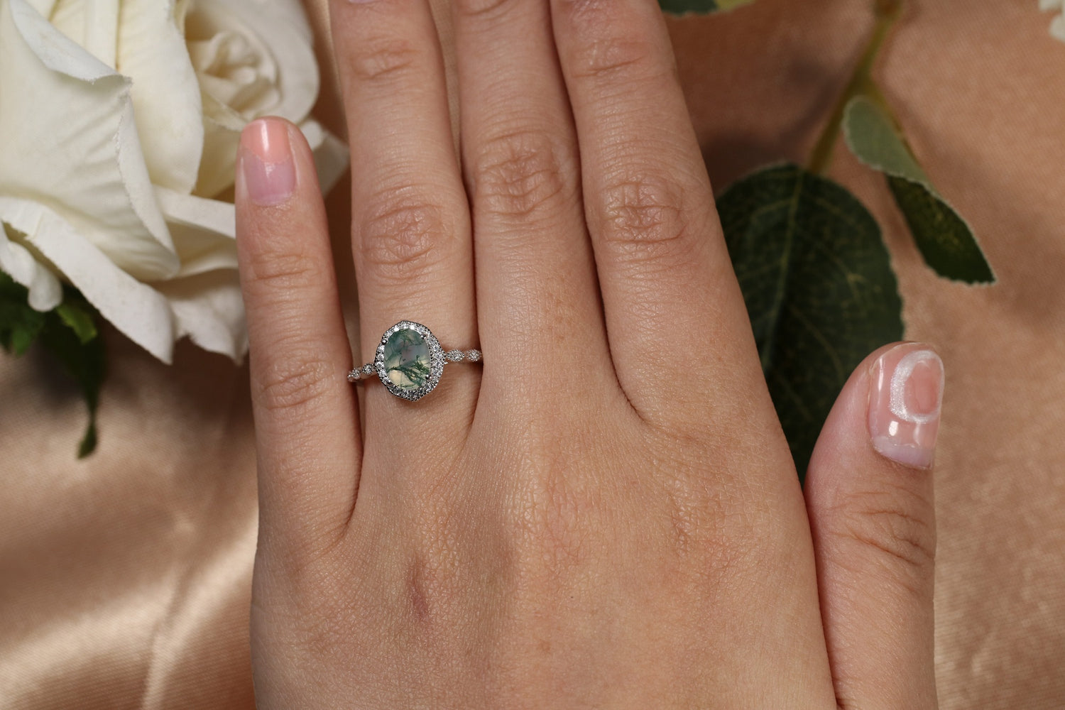 Beautiful world of Green Moss Agate Rings. Special Green hues on the moss agate gemstone, paired with unique customized engagement ring designs, and sold at very affordable prices