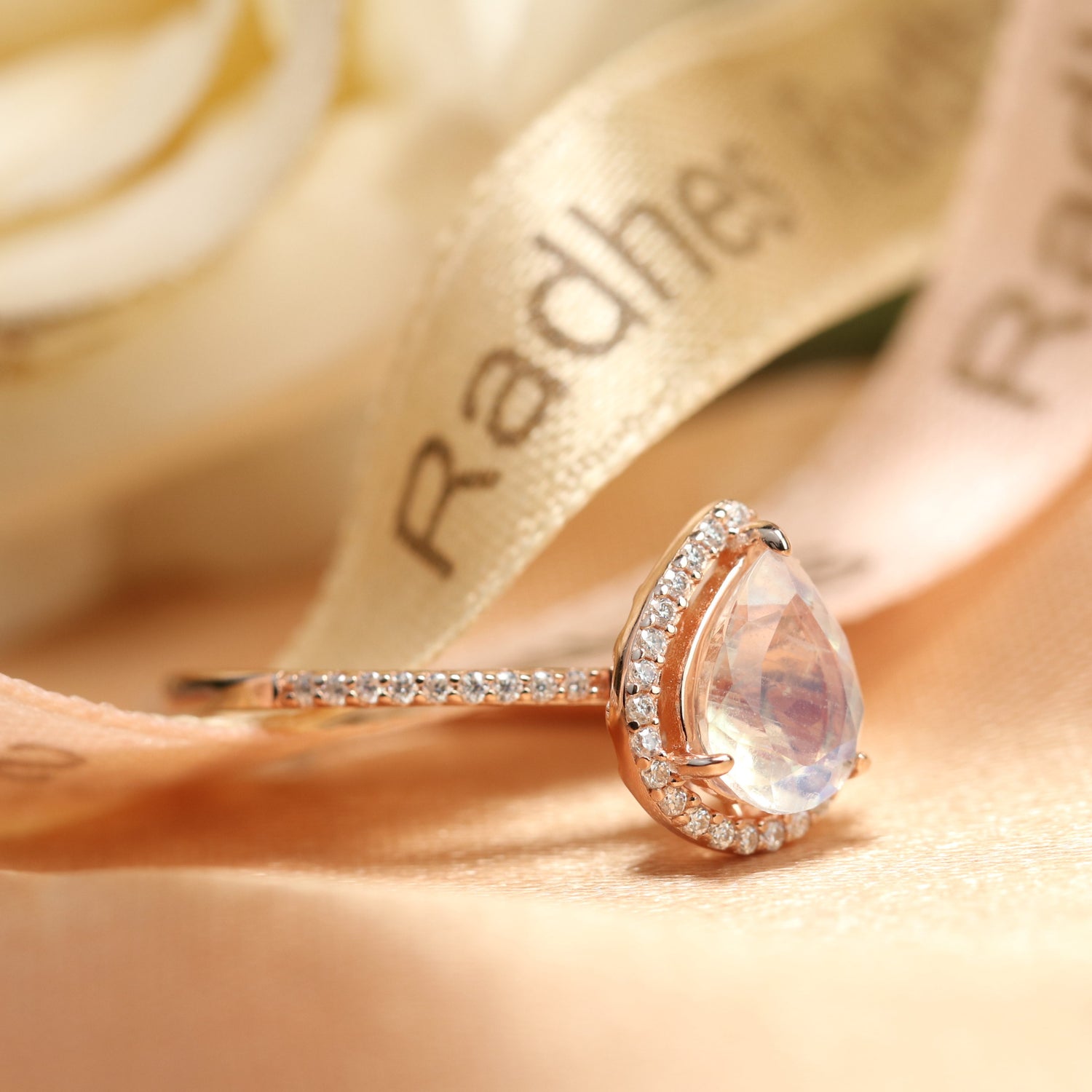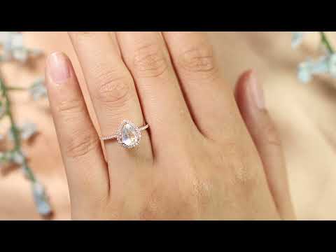 Classic 1.5 carat Tear Drop Shape Moonstone Promise Ring for Her in Rose Gold